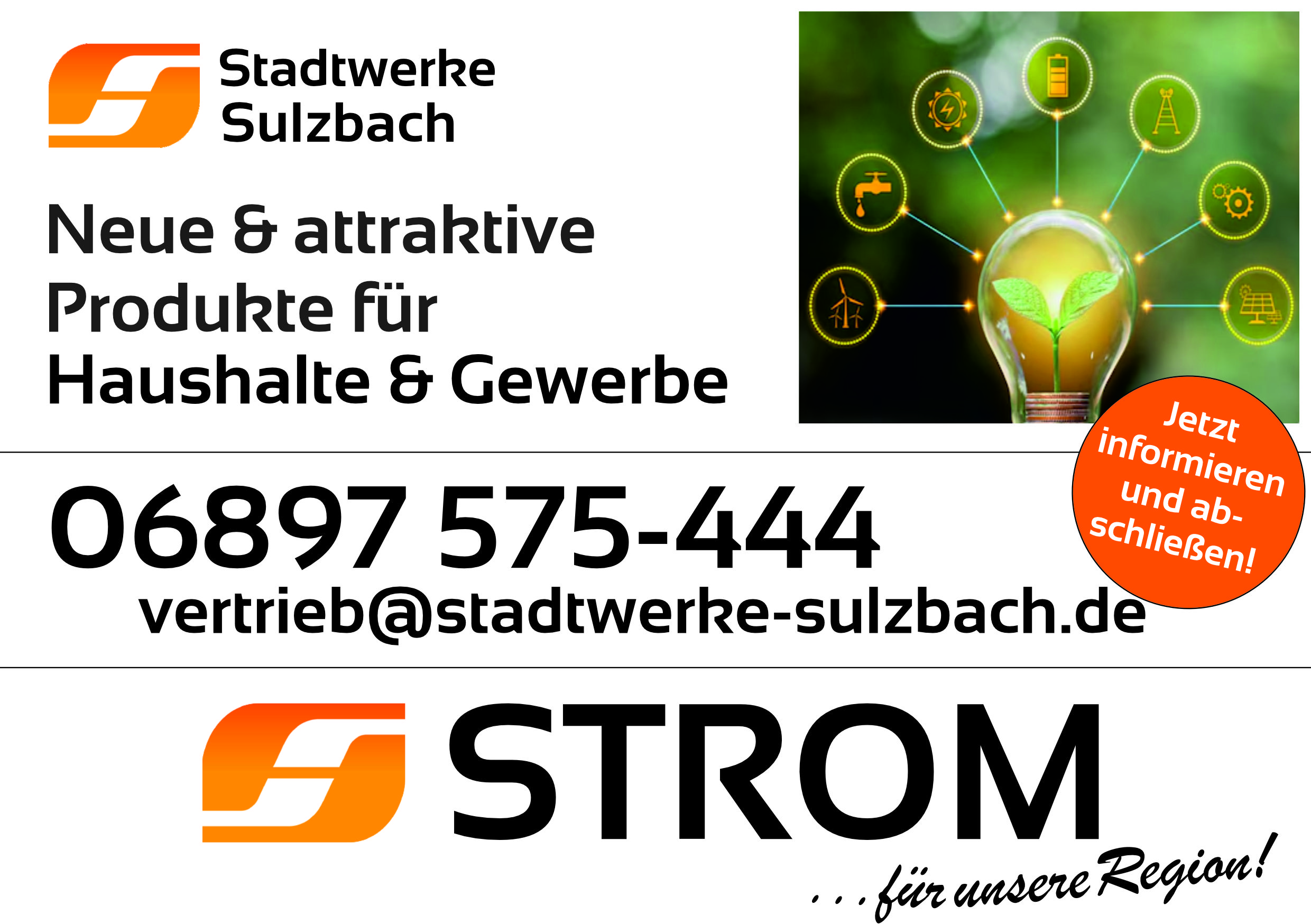 Die Stadtwerke Sulzbach/Saar GmbH bringt einen neuen Stromtarif heraus, der kostengünstig ist und darüber hinaus jahrelange Preissicherheit bietet. Darüber hinaus ist dieser Strom 100% grüner Strom und leistet somit einen Beitrag für unsere Umwelt.